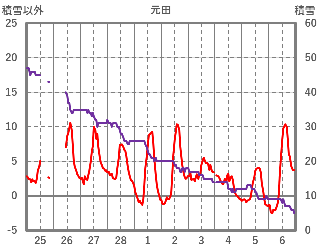 | 日 | 時 | 気温 | 降水 | 風向/風速 | 日照 | 積雪 | 降雪 |