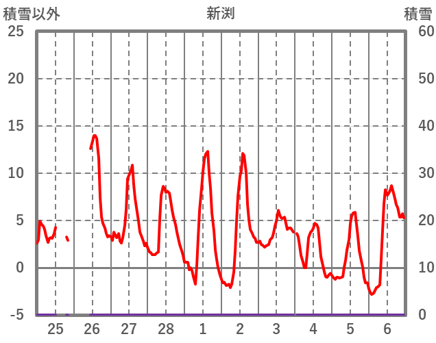 | 日 | 時 | 気温 | 降水 | 風向/風速 | 日照 | 積雪 | 降雪 |