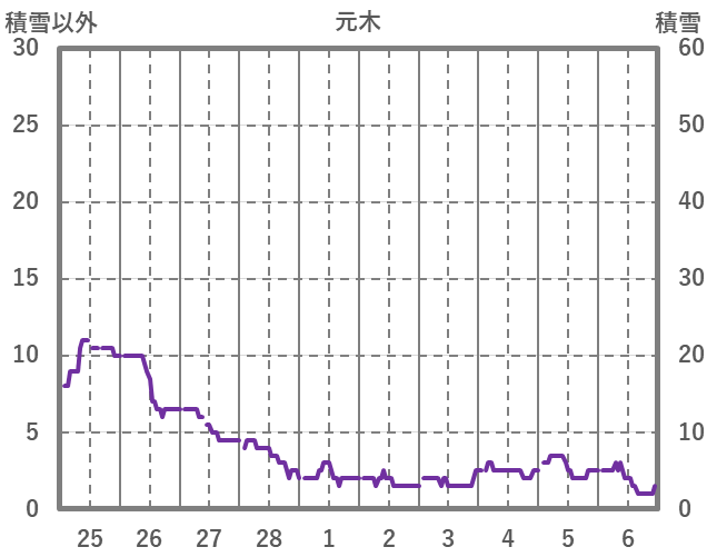 | 日 | 時 | 気温 | 降水 | 風向/風速 | 日照 | 積雪 | 降雪 |