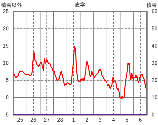 | 日 | 時 | 気温 | 降水 | 風向/風速 | 日照 | 積雪 | 降雪 |