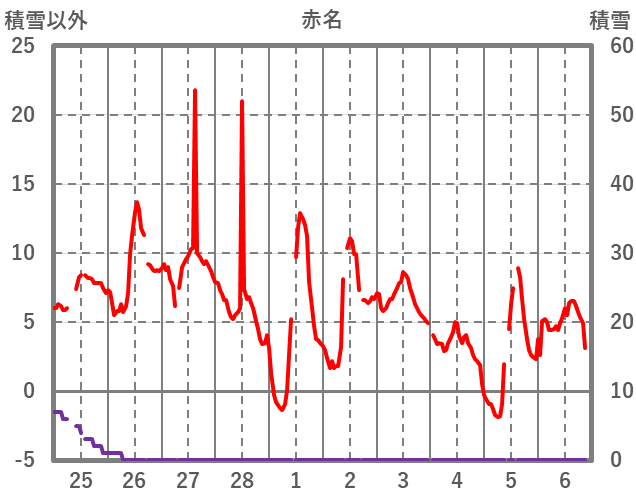 | 日 | 時 | 気温 | 降水 | 風向/風速 | 日照 | 積雪 | 降雪 |