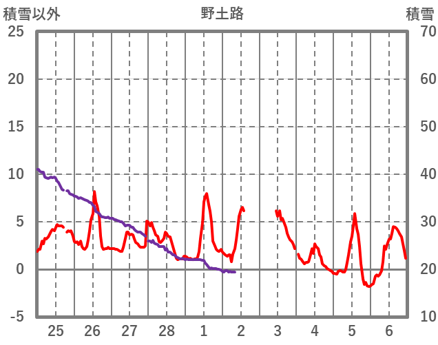 | 日 | 時 | 気温 | 降水 | 風向/風速 | 日照 | 積雪 | 降雪 |