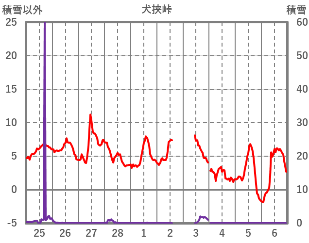 | 日 | 時 | 気温 | 降水 | 風向/風速 | 日照 | 積雪 | 降雪 |