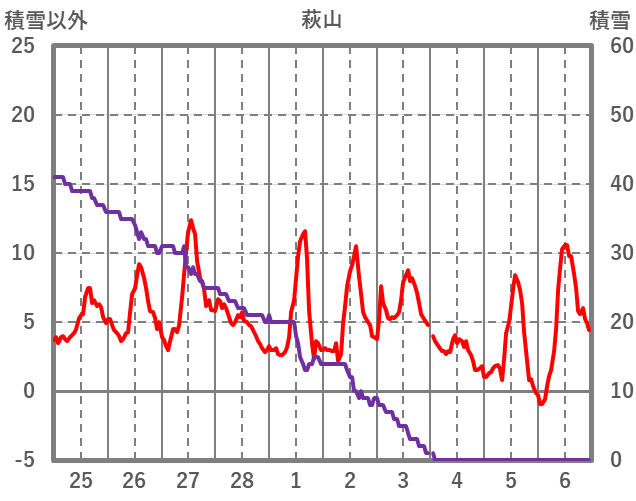 | 日 | 時 | 気温 | 降水 | 風向/風速 | 日照 | 積雪 | 降雪 |