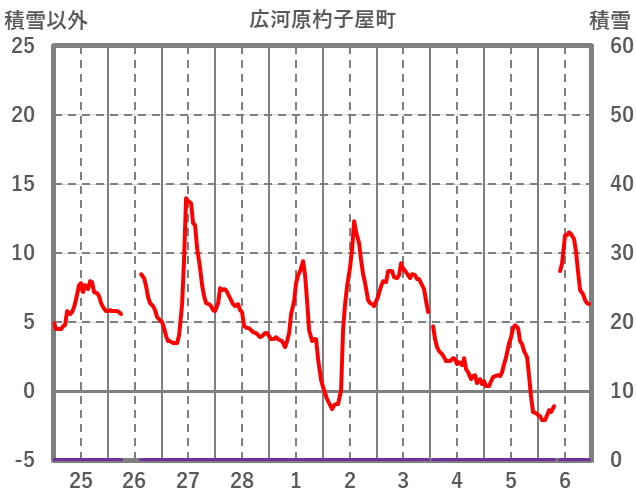 | 日 | 時 | 気温 | 降水 | 風向/風速 | 日照 | 積雪 | 降雪 |