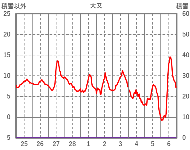 | 日 | 時 | 気温 | 降水 | 風向/風速 | 日照 | 積雪 | 降雪 |
