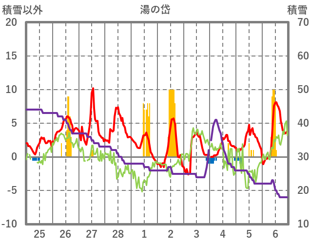 | 日 | 時 | 気温 | 降水 | 風向/風速 | 日照 | 積雪 | 降雪 |