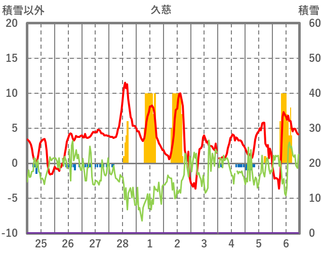 | 日 | 時 | 気温 | 降水 | 風向/風速 | 日照 | 積雪 | 降雪 |