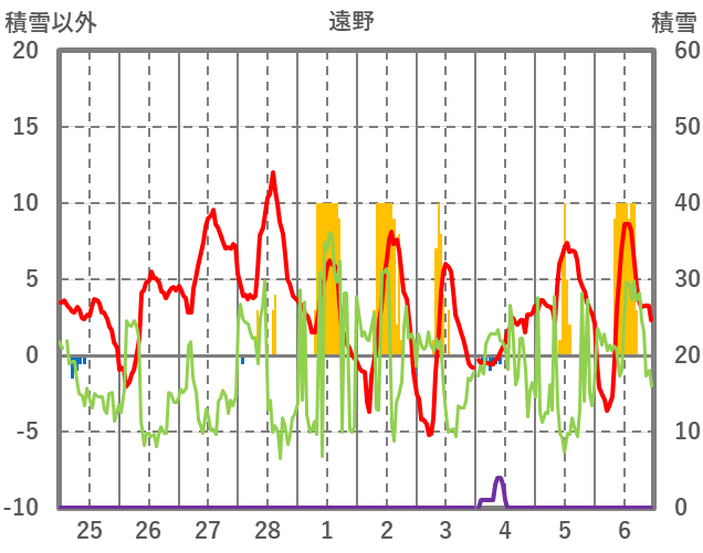 | 日 | 時 | 気温 | 降水 | 風向/風速 | 日照 | 積雪 | 降雪 |