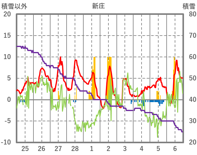 | 日 | 時 | 気温 | 降水 | 風向/風速 | 日照 | 積雪 | 降雪 |