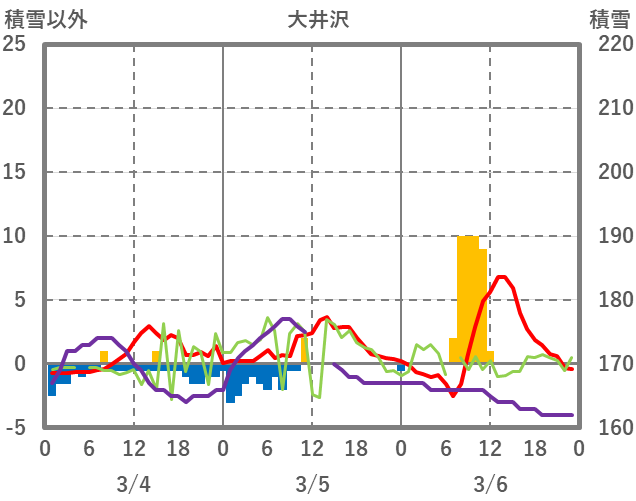 | 日 | 時 | 気温 | 降水 | 風向/風速 | 日照 | 積雪 | 降雪 |