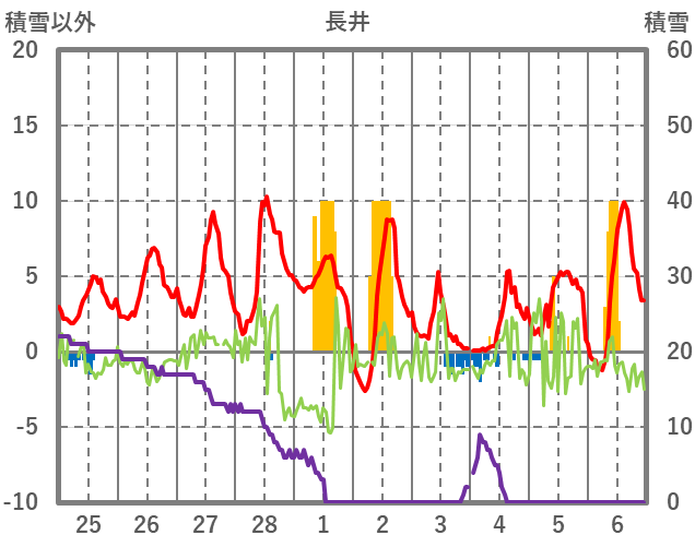| 日 | 時 | 気温 | 降水 | 風向/風速 | 日照 | 積雪 | 降雪 |