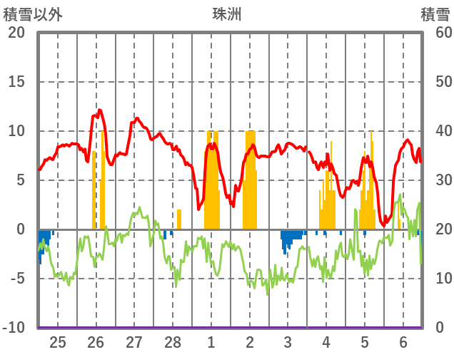 | 日 | 時 | 気温 | 降水 | 風向/風速 | 日照 | 積雪 | 降雪 |