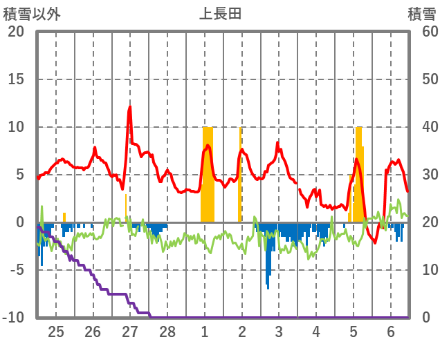 | 日 | 時 | 気温 | 降水 | 風向/風速 | 日照 | 積雪 | 降雪 |