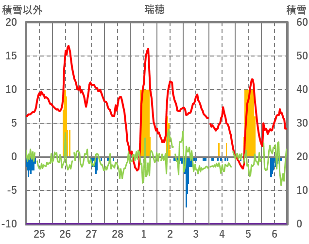 | 日 | 時 | 気温 | 降水 | 風向/風速 | 日照 | 積雪 | 降雪 |