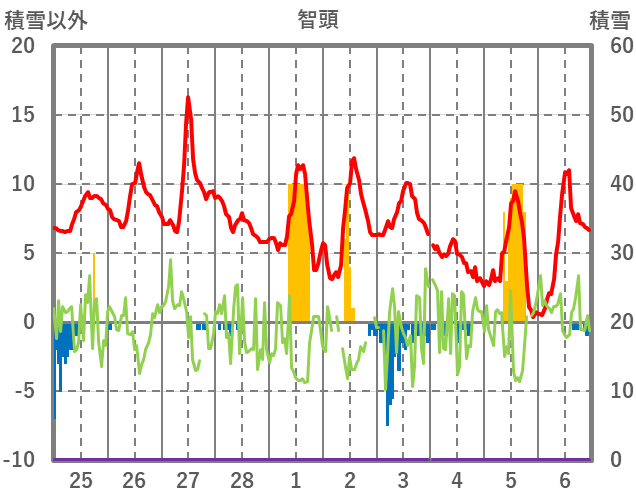 | 日 | 時 | 気温 | 降水 | 風向/風速 | 日照 | 積雪 | 降雪 |