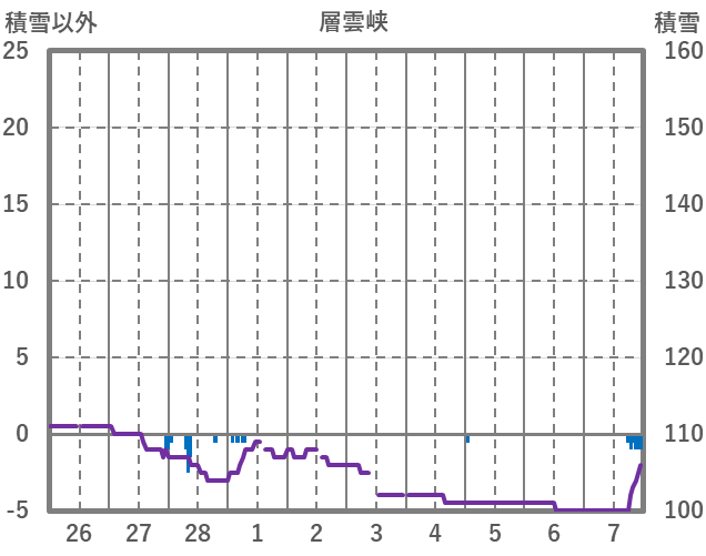 | 日 | 時 | 気温 | 降水 | 風向/風速 | 日照 | 積雪 | 降雪 |