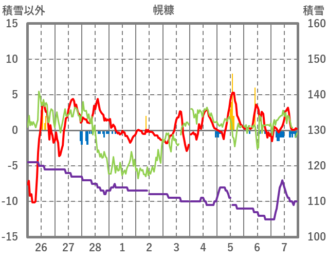 | 日 | 時 | 気温 | 降水 | 風向/風速 | 日照 | 積雪 | 降雪 |