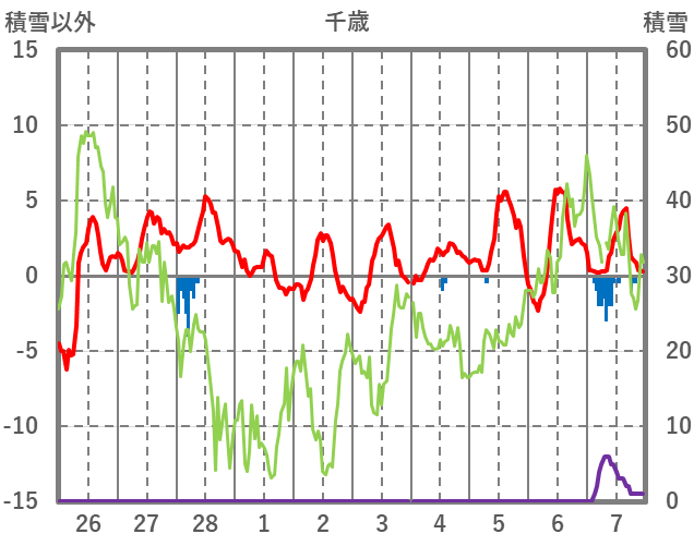 | 日 | 時 | 気温 | 降水 | 風向/風速 | 日照 | 積雪 | 降雪 |