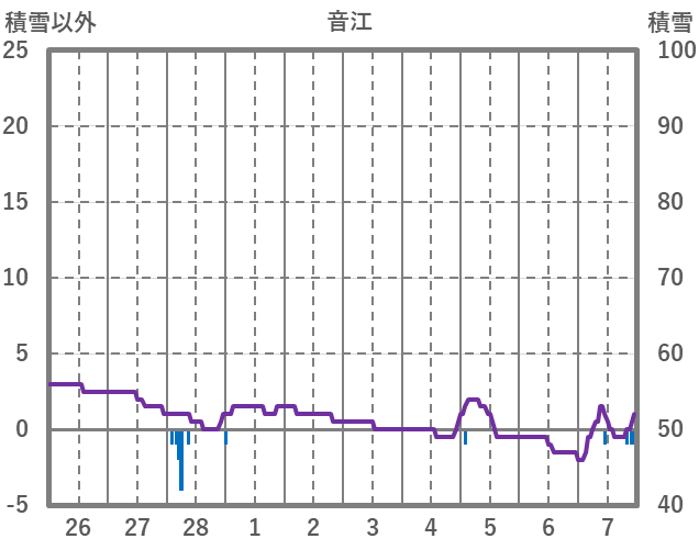 | 日 | 時 | 気温 | 降水 | 風向/風速 | 日照 | 積雪 | 降雪 |