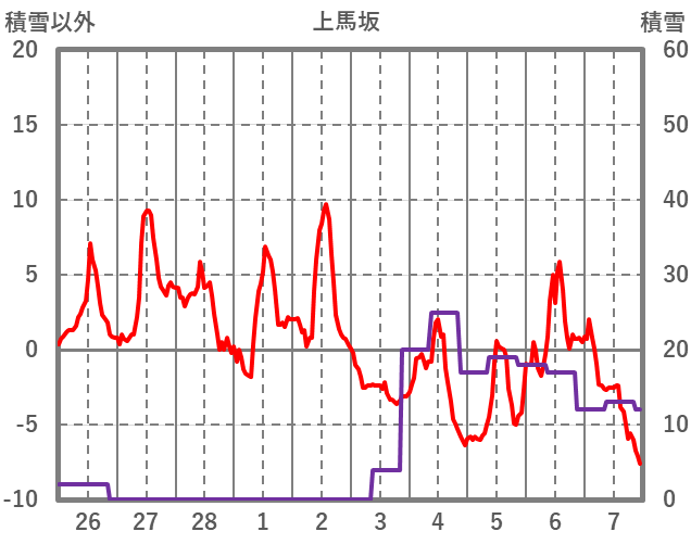 | 日 | 時 | 気温 | 降水 | 風向/風速 | 日照 | 積雪 | 降雪 |