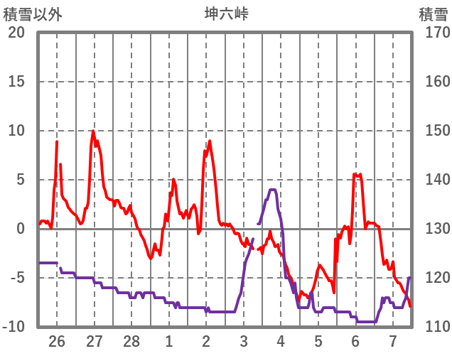 | 日 | 時 | 気温 | 降水 | 風向/風速 | 日照 | 積雪 | 降雪 |