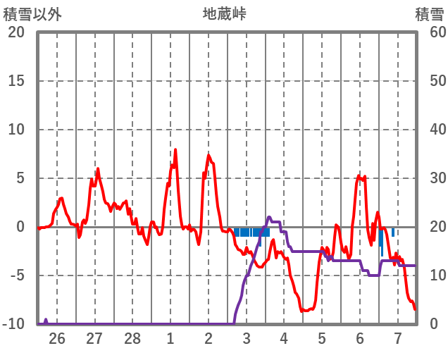 | 日 | 時 | 気温 | 降水 | 風向/風速 | 日照 | 積雪 | 降雪 |