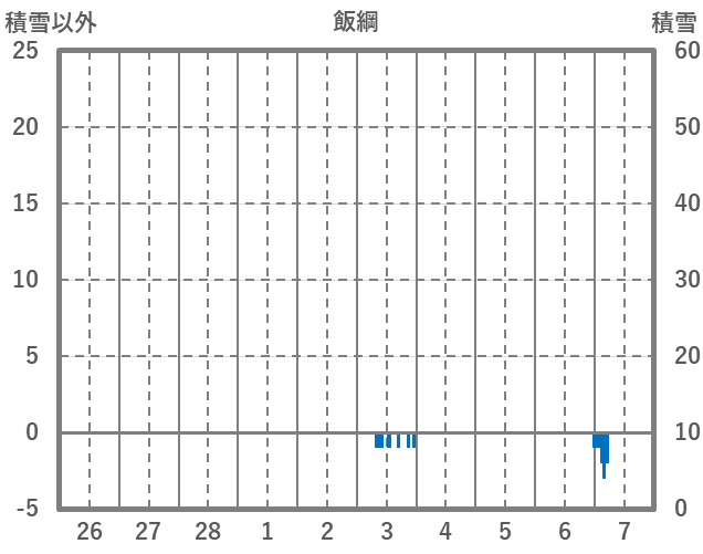 | 日 | 時 | 気温 | 降水 | 風向/風速 | 日照 | 積雪 | 降雪 |