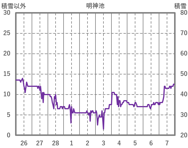 | 日 | 時 | 気温 | 降水 | 風向/風速 | 日照 | 積雪 | 降雪 |
