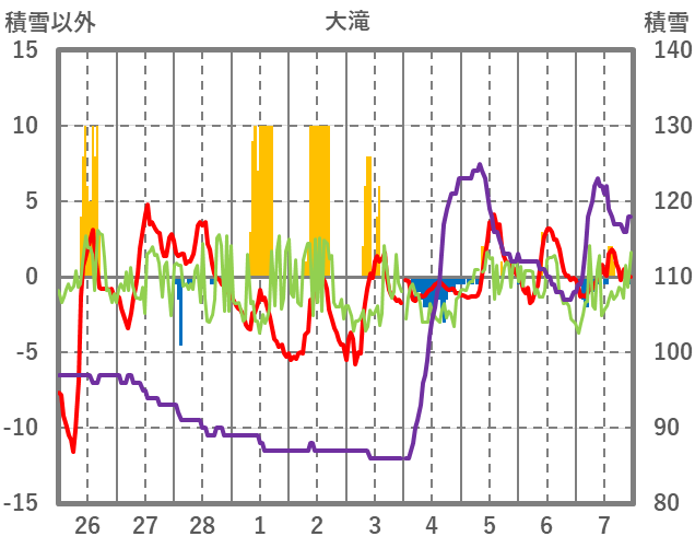 | 日 | 時 | 気温 | 降水 | 風向/風速 | 日照 | 積雪 | 降雪 |