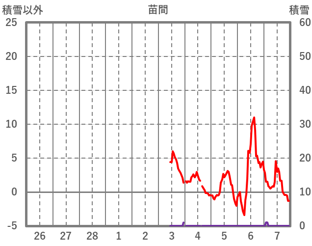 | 日 | 時 | 気温 | 降水 | 風向/風速 | 日照 | 積雪 | 降雪 |