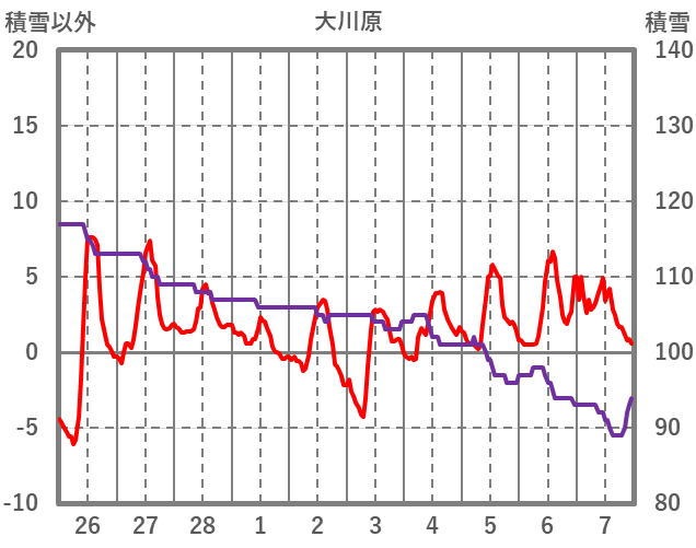 | 日 | 時 | 気温 | 降水 | 風向/風速 | 日照 | 積雪 | 降雪 |