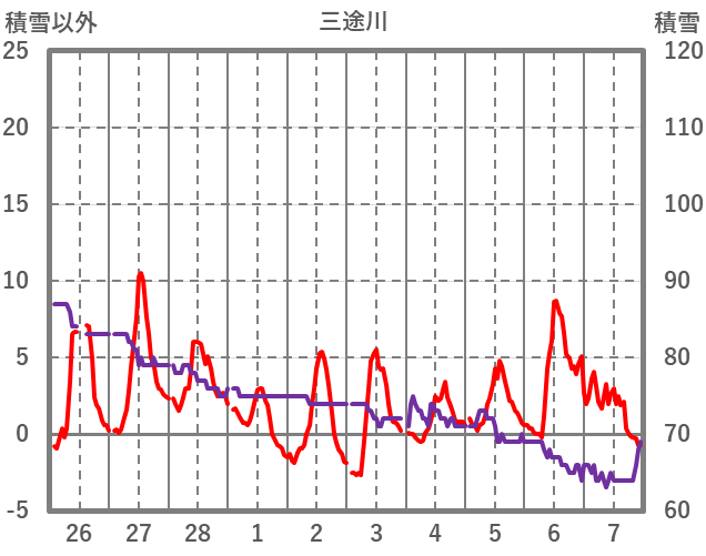 | 日 | 時 | 気温 | 降水 | 風向/風速 | 日照 | 積雪 | 降雪 |