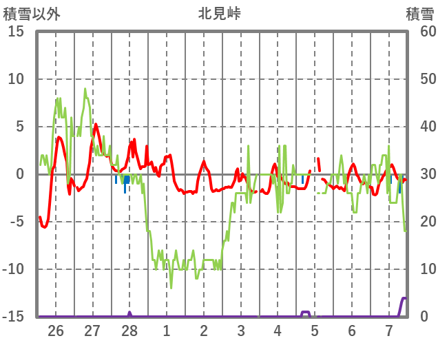 | 日 | 時 | 気温 | 降水 | 風向/風速 | 日照 | 積雪 | 降雪 |