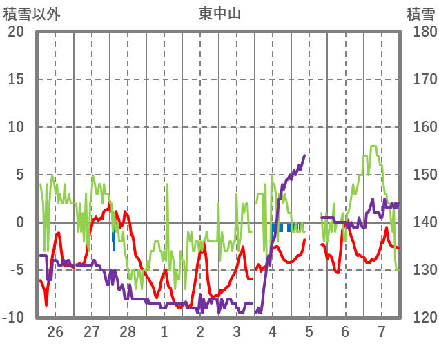 | 日 | 時 | 気温 | 降水 | 風向/風速 | 日照 | 積雪 | 降雪 |