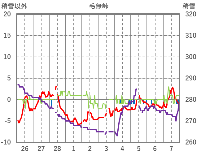 | 日 | 時 | 気温 | 降水 | 風向/風速 | 日照 | 積雪 | 降雪 |