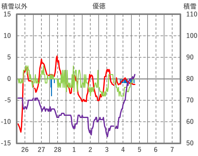 | 日 | 時 | 気温 | 降水 | 風向/風速 | 日照 | 積雪 | 降雪 |