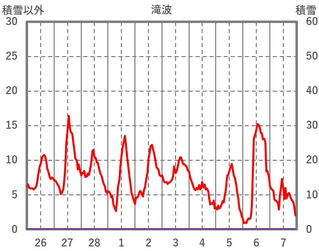 | 日 | 時 | 気温 | 降水 | 風向/風速 | 日照 | 積雪 | 降雪 |
