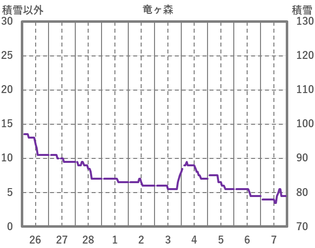 | 日 | 時 | 気温 | 降水 | 風向/風速 | 日照 | 積雪 | 降雪 |