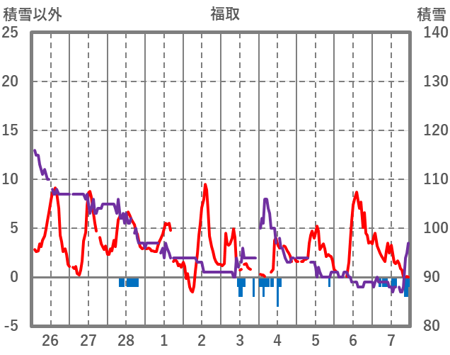 | 日 | 時 | 気温 | 降水 | 風向/風速 | 日照 | 積雪 | 降雪 |