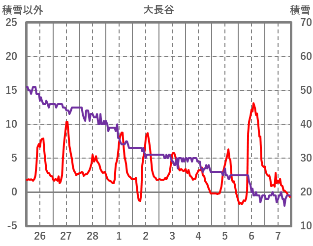 | 日 | 時 | 気温 | 降水 | 風向/風速 | 日照 | 積雪 | 降雪 |