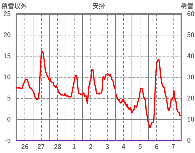 | 日 | 時 | 気温 | 降水 | 風向/風速 | 日照 | 積雪 | 降雪 |