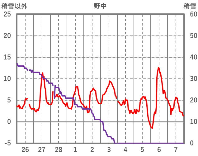 | 日 | 時 | 気温 | 降水 | 風向/風速 | 日照 | 積雪 | 降雪 |