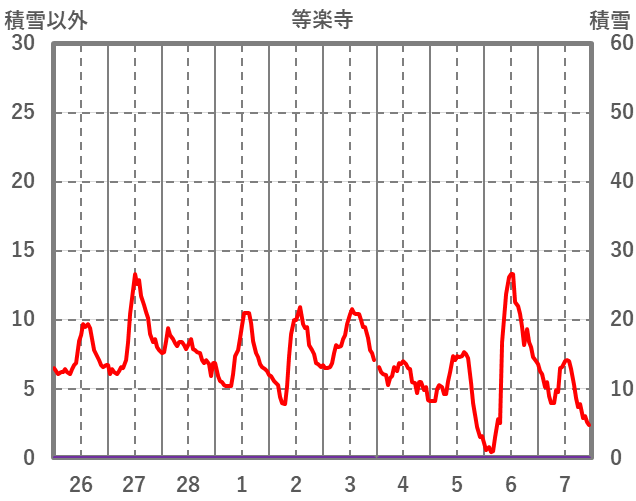 | 日 | 時 | 気温 | 降水 | 風向/風速 | 日照 | 積雪 | 降雪 |