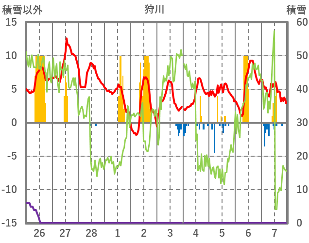 | 日 | 時 | 気温 | 降水 | 風向/風速 | 日照 | 積雪 | 降雪 |