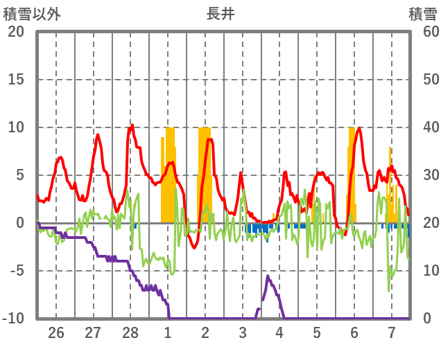 | 日 | 時 | 気温 | 降水 | 風向/風速 | 日照 | 積雪 | 降雪 |