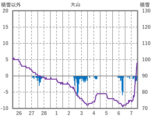 | 日 | 時 | 気温 | 降水 | 風向/風速 | 日照 | 積雪 | 降雪 |