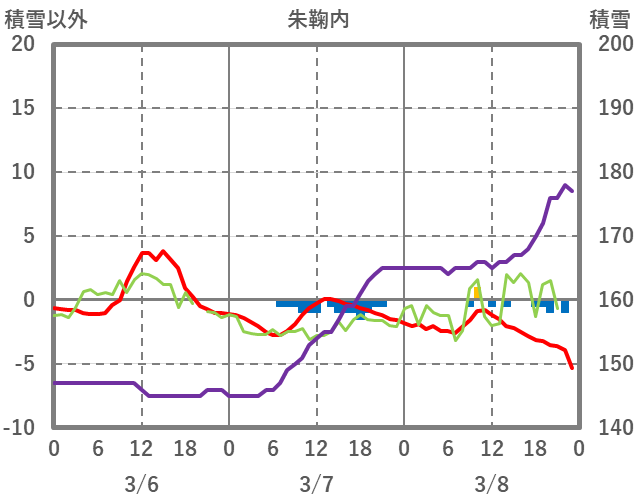 | 日 | 時 | 気温 | 降水 | 風向/風速 | 日照 | 積雪 | 降雪 |