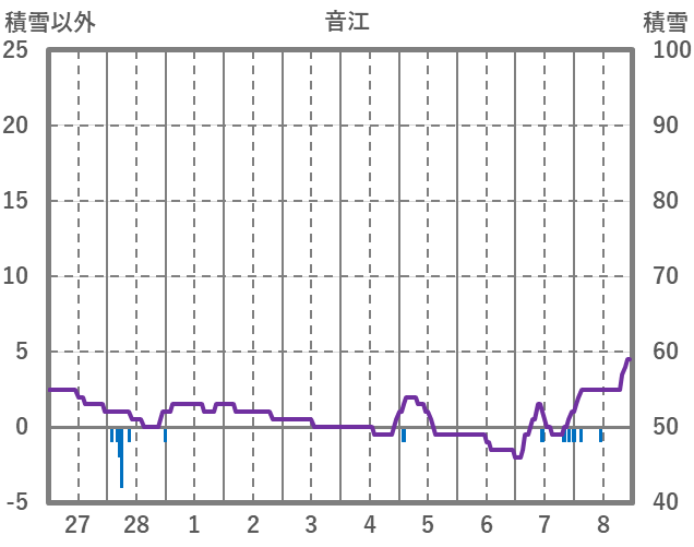 | 日 | 時 | 気温 | 降水 | 風向/風速 | 日照 | 積雪 | 降雪 |