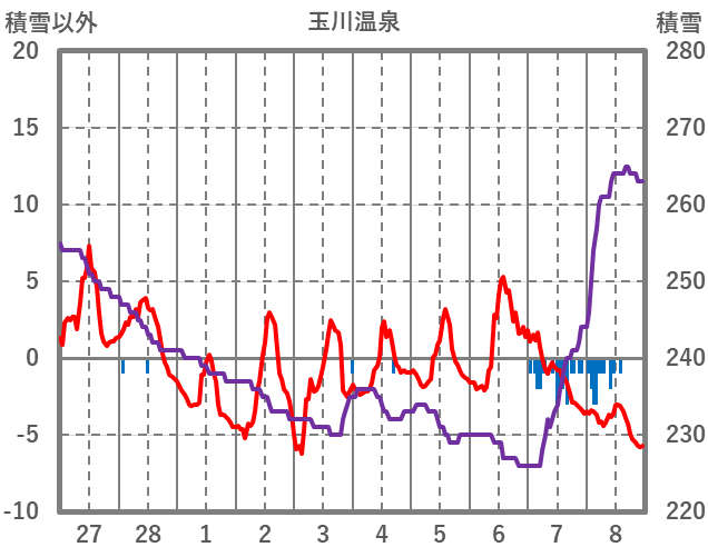 | 日 | 時 | 気温 | 降水 | 風向/風速 | 日照 | 積雪 | 降雪 |